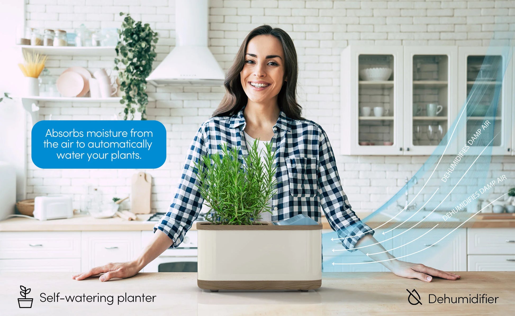The Dewplanter is ideal for small indoor environments where both humidity control and plant care are part of everyday life.